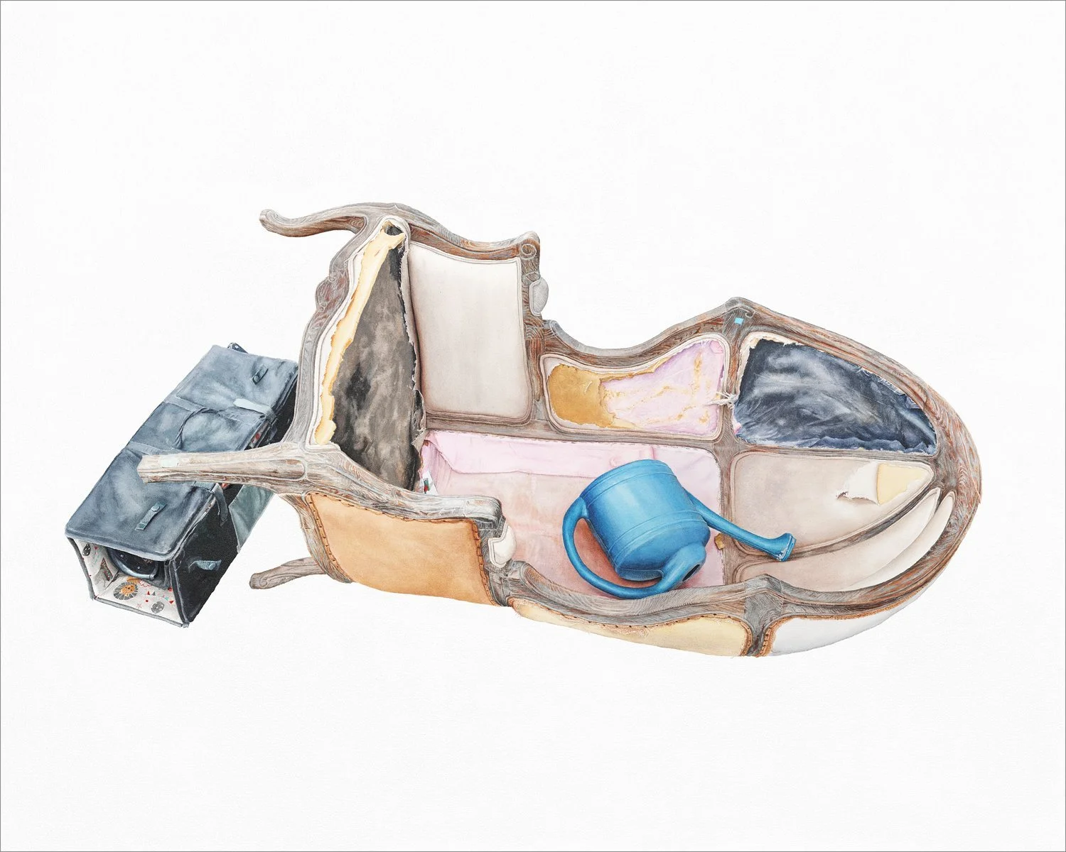 Jason Webb is an Austin-based artist who spends his Sundays driving through unfamiliar neighborhoods photographing once private possessions, now publicly disowned. From those photographs, he studiously paints individual piles isolated against white backgrounds.